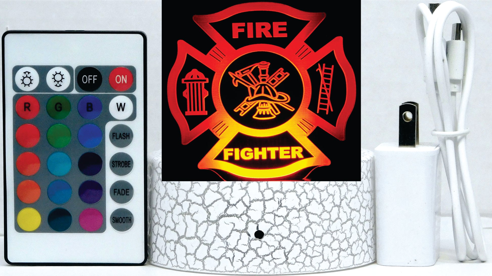 Give your firefighter the appreciation they deserve with this unique Firefighter Logo 3-D Optical Illusion Multicolored LED Lamp! It's the perfect gift to light up their night with its beautiful 3-D optical illusion, multicolored LED lights, and customizable base options. Show them how much you care!