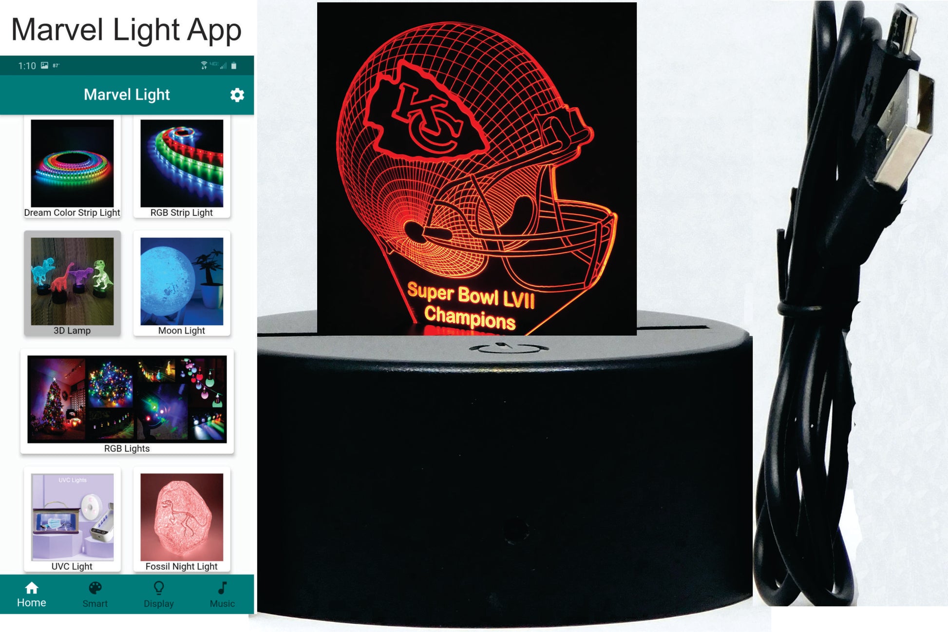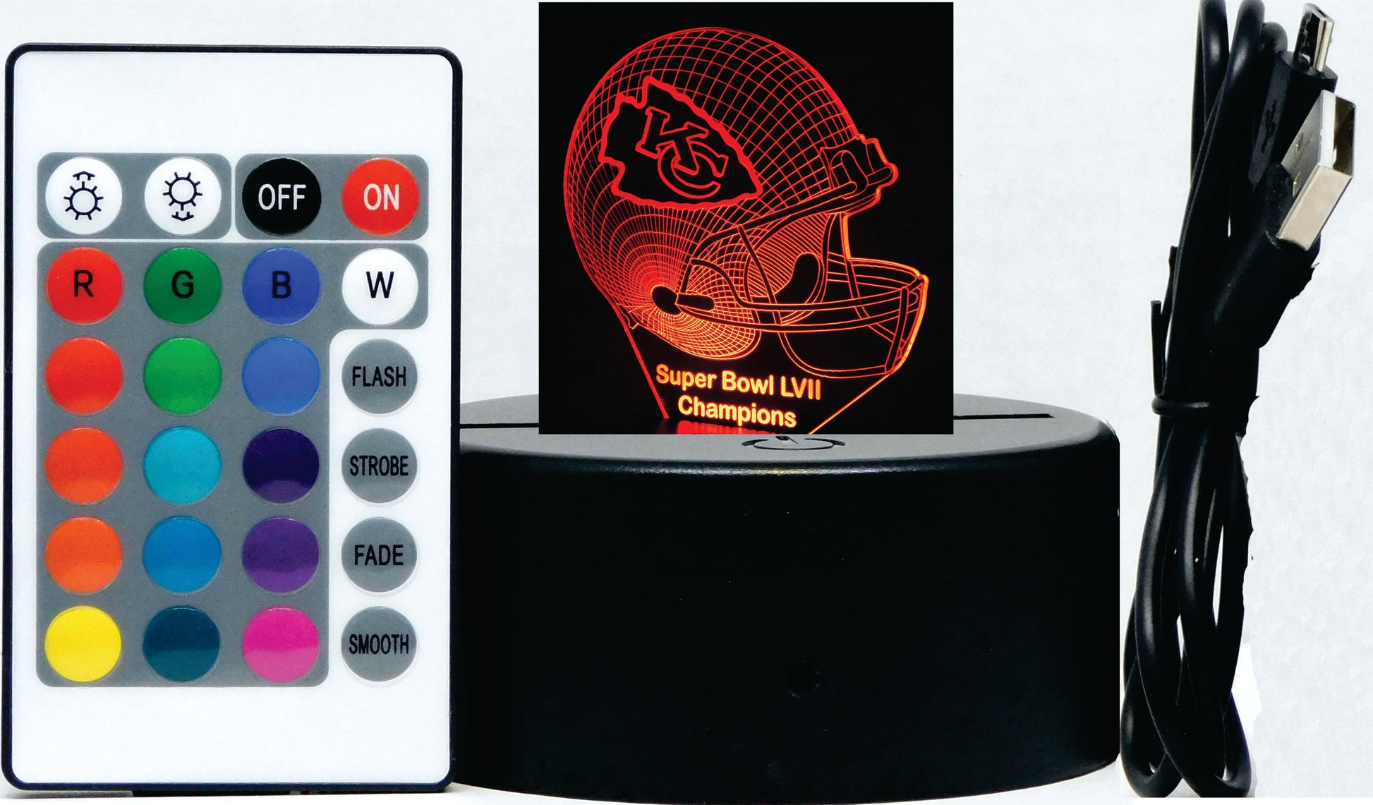 Legal Notice: This LED night lamp is not a licensed product of the copyright/trademark owner (NFL -AFC Team) of the logo engraved. It is, however, lawfully hand-crafted from licensed stickers. We are not affiliated, connected with, or sponsored in any way by the copyright/trademark owners (NFL - AFC Teams).