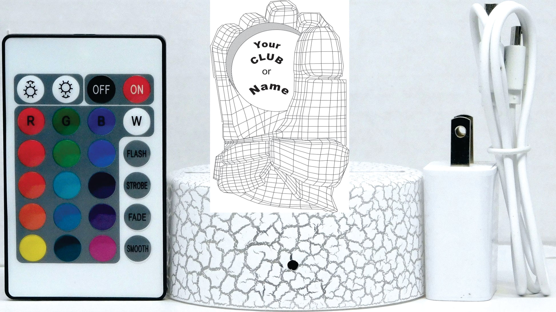 Let your imagination soar with this personalized or non-personalized Hockey Glove 3-D Optical Illusion Multicolored Light! This unique nightlight doubles as a decorative piece and a 3-D illusion. Fitted with LED lamps and multiple base options, it's the perfect gift for that special someone! Dare to dream!